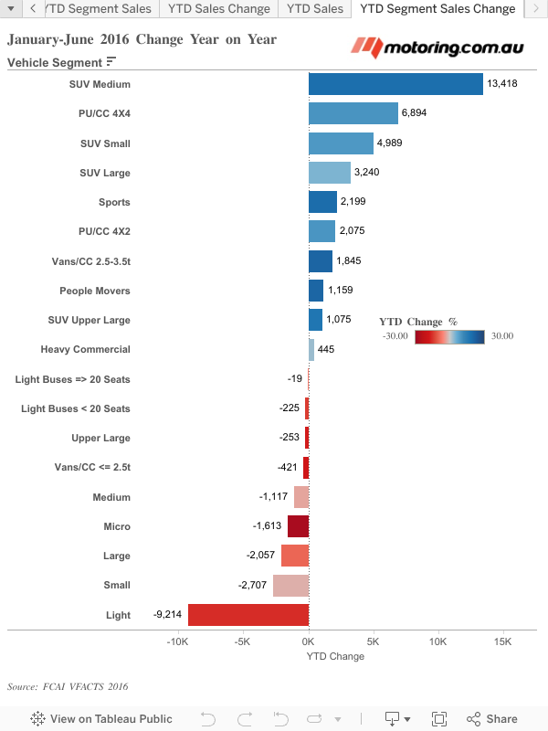 Overall, the Australian marketplace is up 3.4% year to date. Only Tasmania and Western Australia have logged fewer registrations in the first half of 2016 compared to last year.